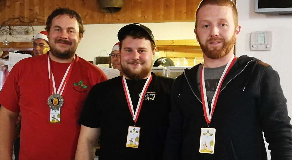 Harald Waldinger (re.) und Florian Steurer erhielten den Hausorden in Bronze von Zunftmeister Jürgen Winder.