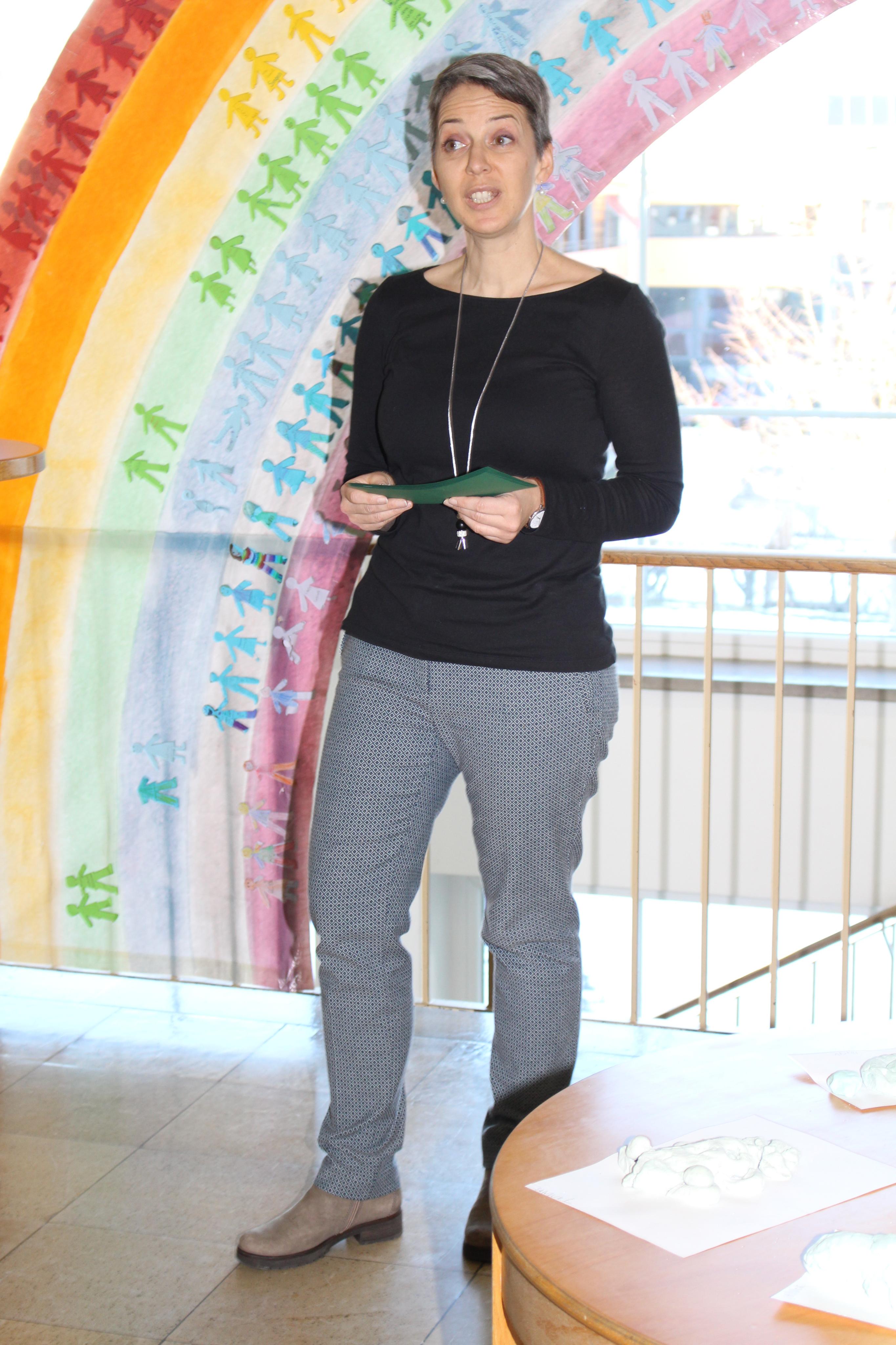Birgit Battlogg erläuterte die Entstehung des Kunstwerks der Schüler.