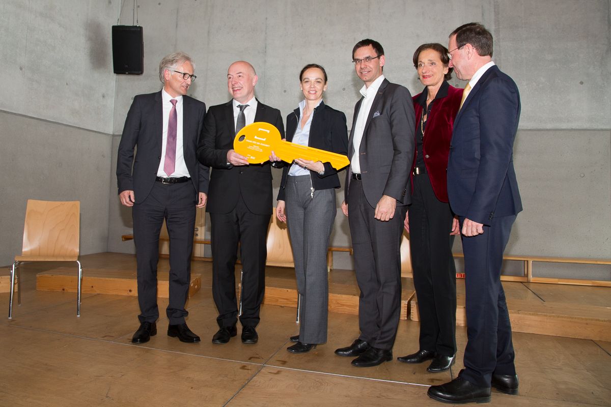 Direktor Mag. Ariel Lang konnte 2017 den symbolischen Schlüssel des generalsanierten und erweiterten Schulbaus in Empfang nehmen.