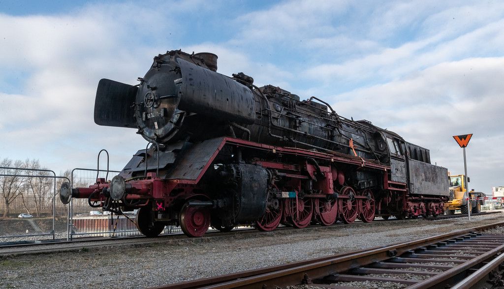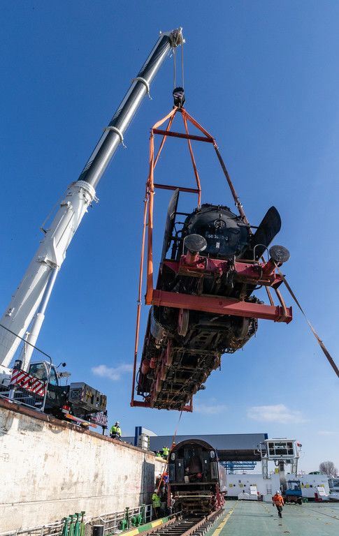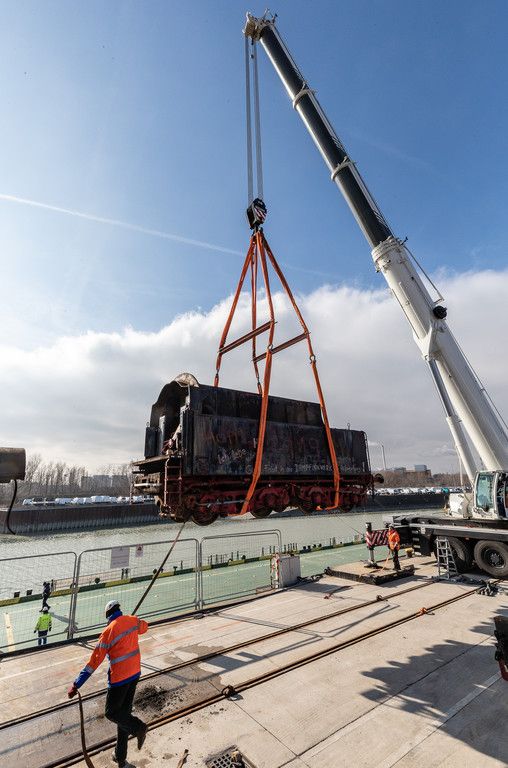 Wien: Dampflok auf Schiff verladen
