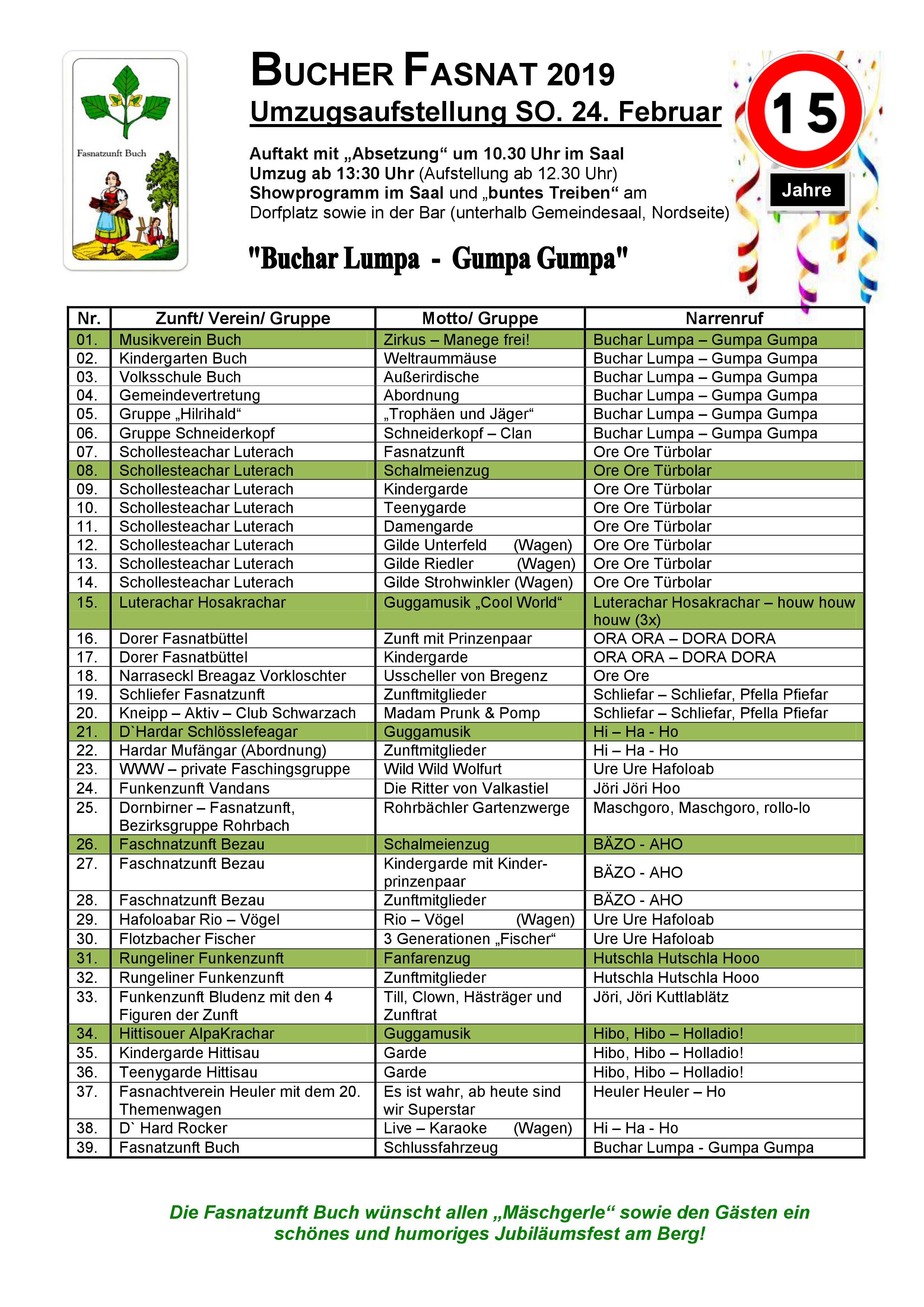 Umzugsaufstellung - Bucher Fasnat 2019