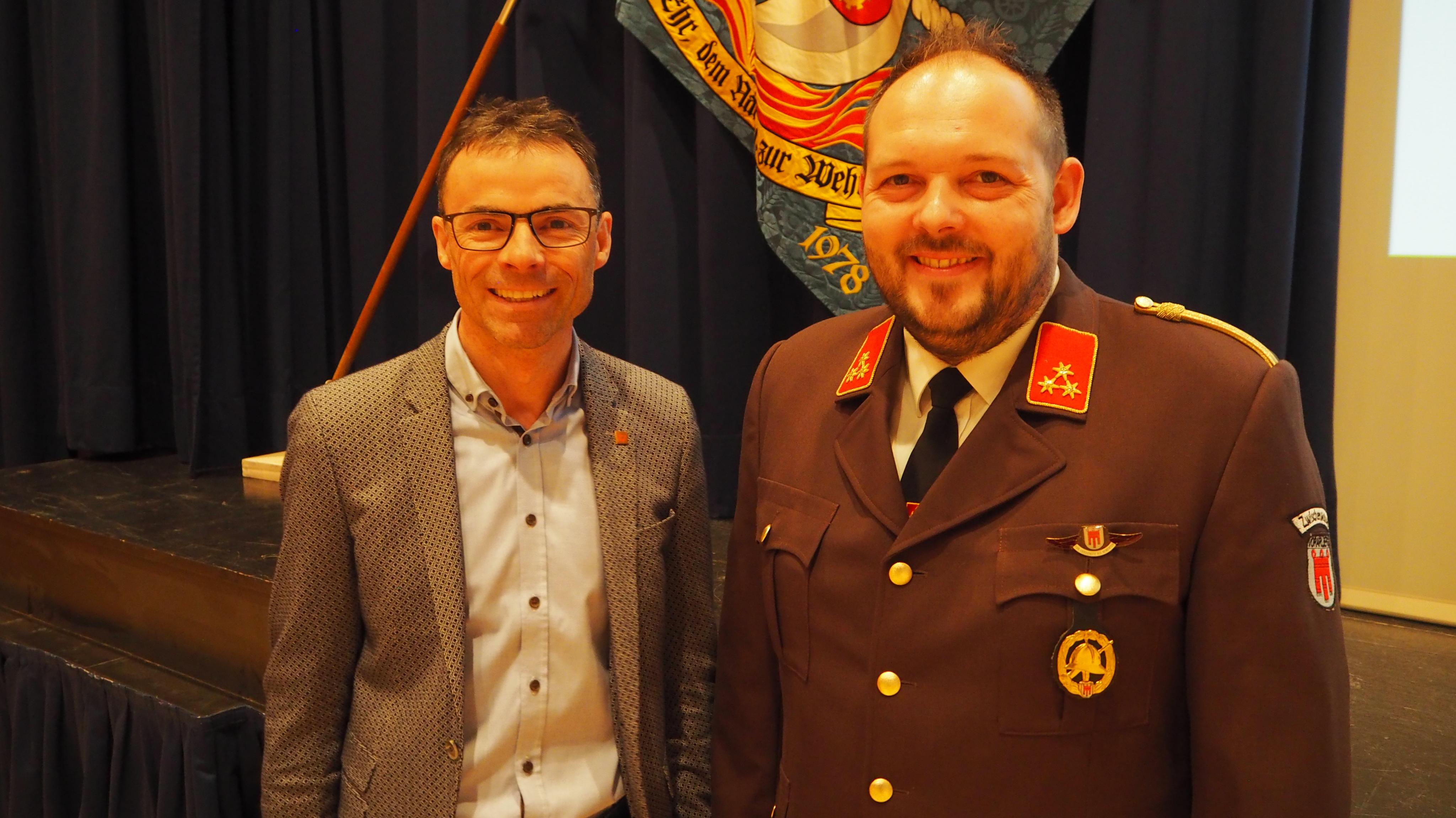 Bürgermeister Kilian Tschabrun mit Kommandant Matthias Natter