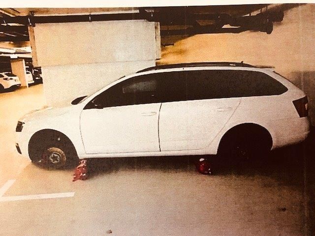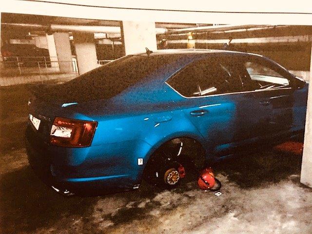 Pkw mit Feuerlöschern "aufgebockt"