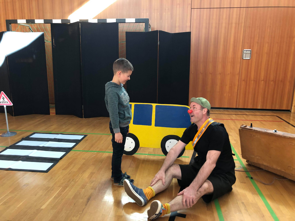 Verkehrserziehung mit Clown Schlotterhos