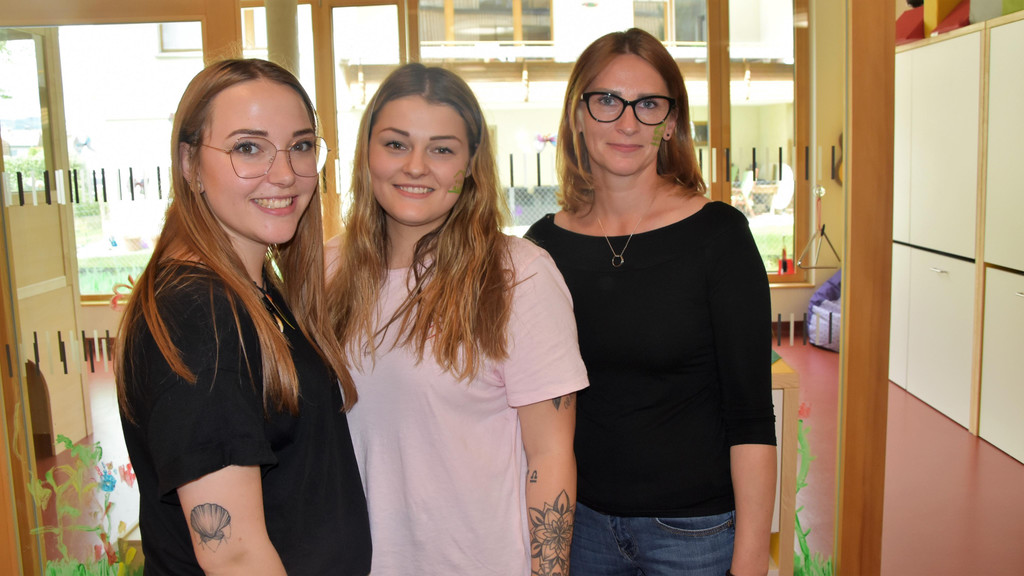 Orenella, Elena und Slavka betreuen die Kleinsten