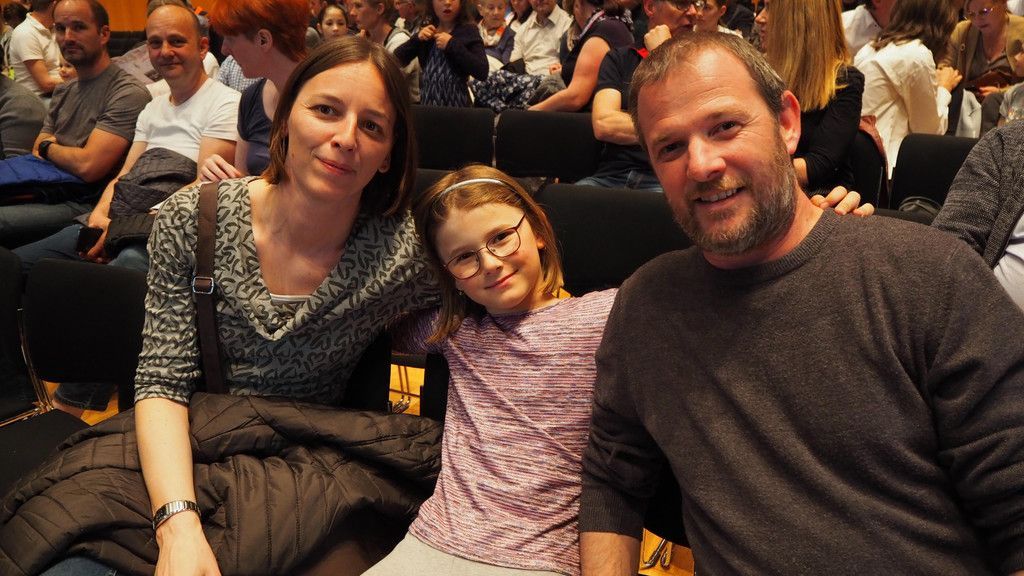 Tanja, Melanie und Arno Schweiger warten gespannt auf den Auftritt von Tochter Leonie
