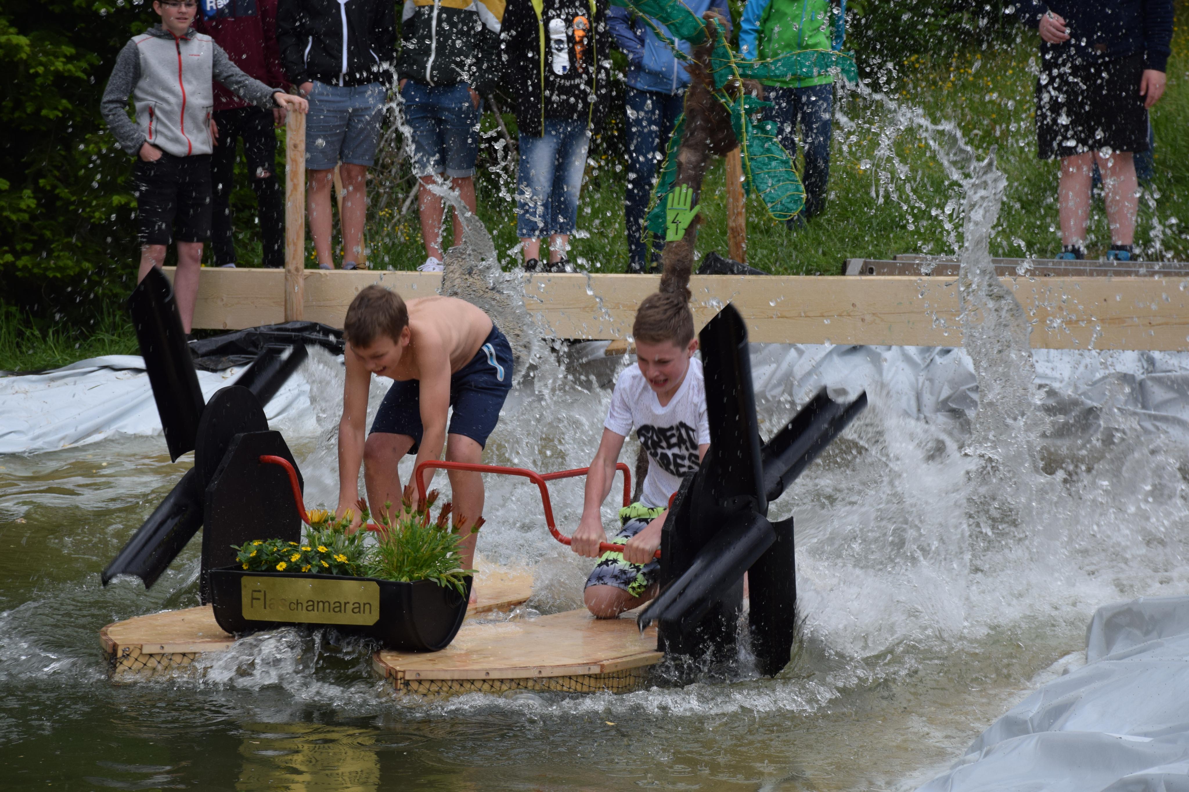 Der "Flaschamaran" schwamm durch den Auftrieb von 200 Plastikflaschen.