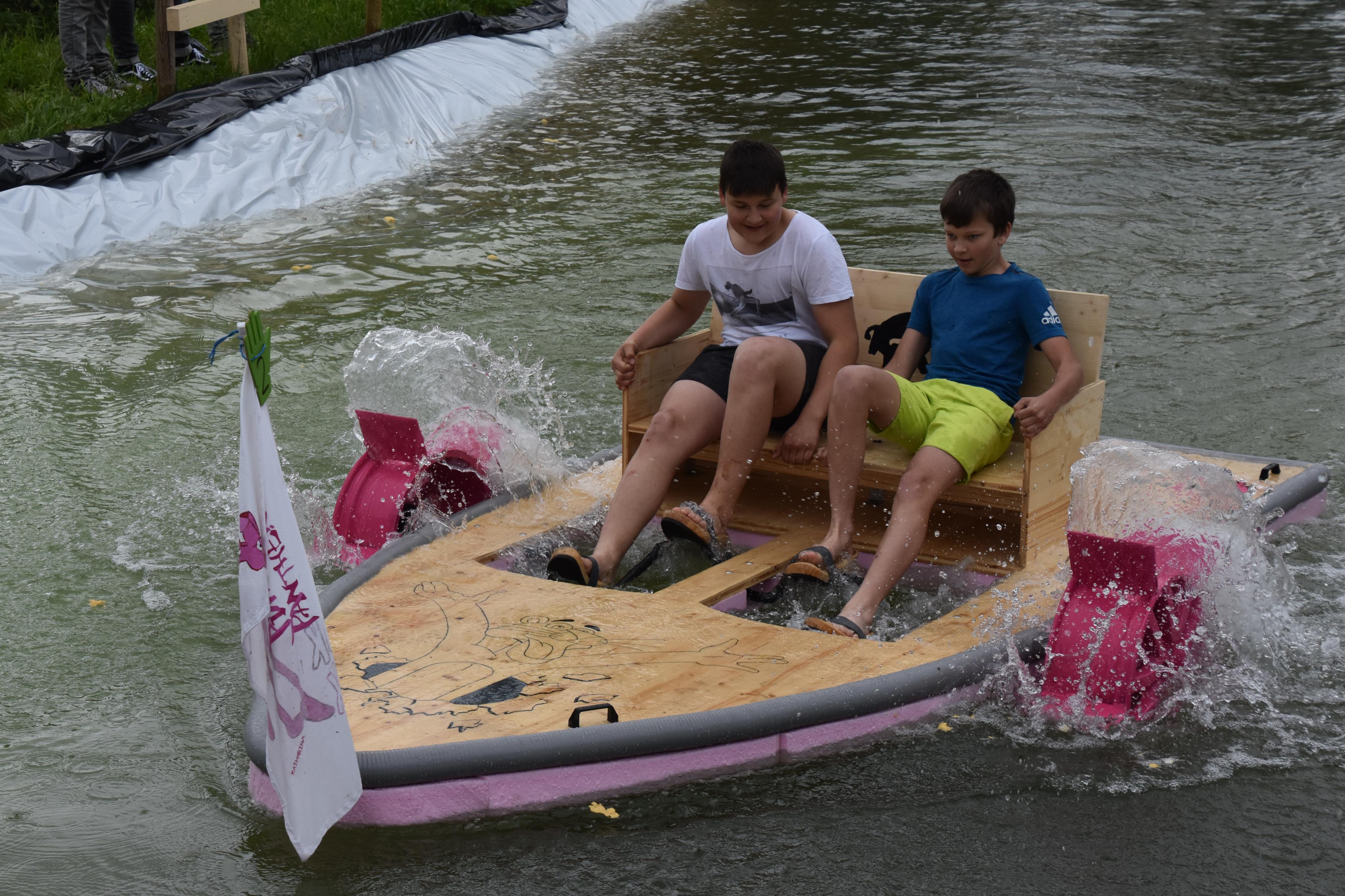 Schwimmobjekt "Pink Panther" in voller Fahrt.