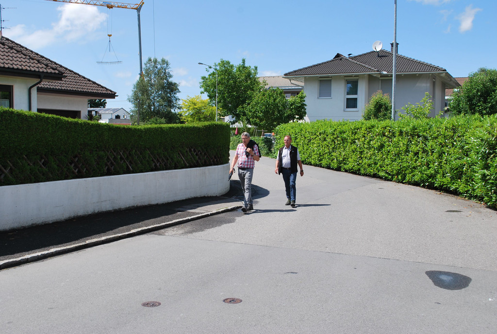 In dieser Seitenstraße endet der Gehsteig vor einer unübersichtlichen Kurve.