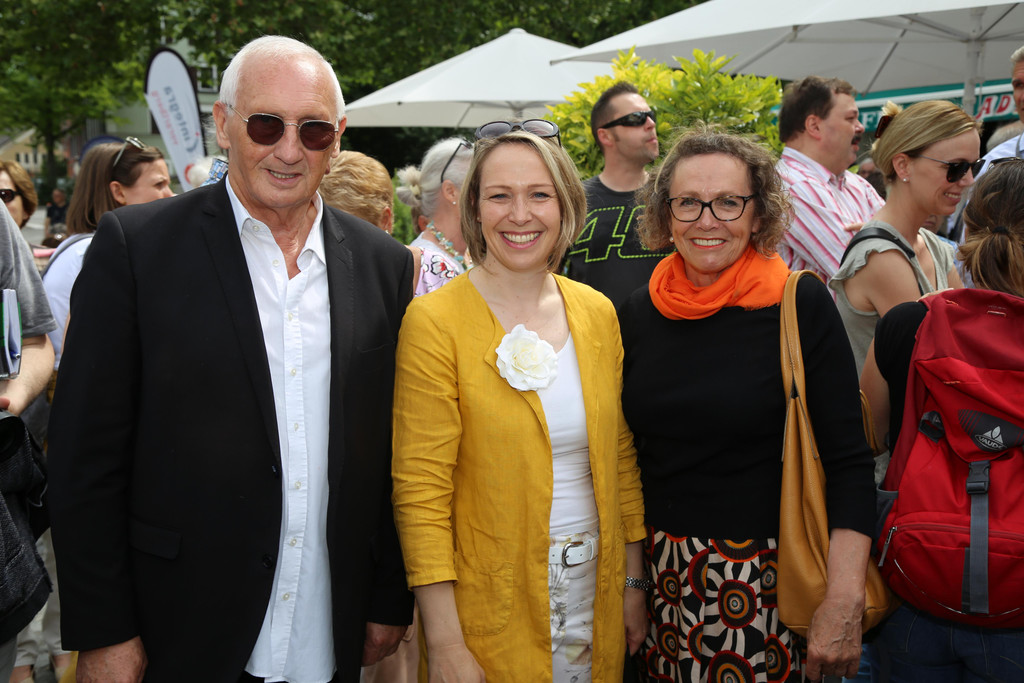 Ortsvorsteher Dieter Preschle, Vizebürgermeisterin Gudrun Petz-Bechter und Mutter Annemarie Bechter
