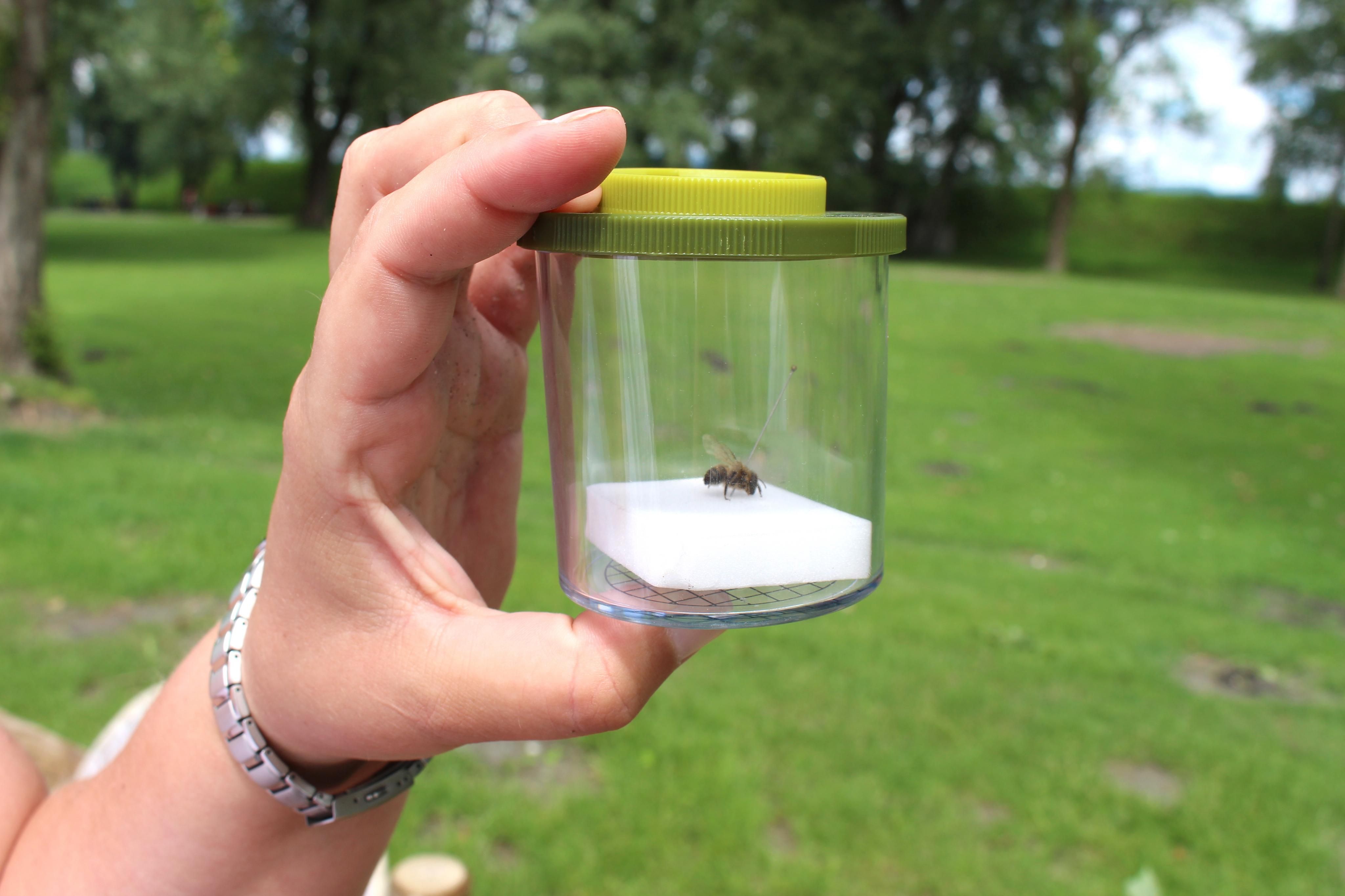Eine aufgesteckte Biene konnte durch eine Lupe angeschaut werden.