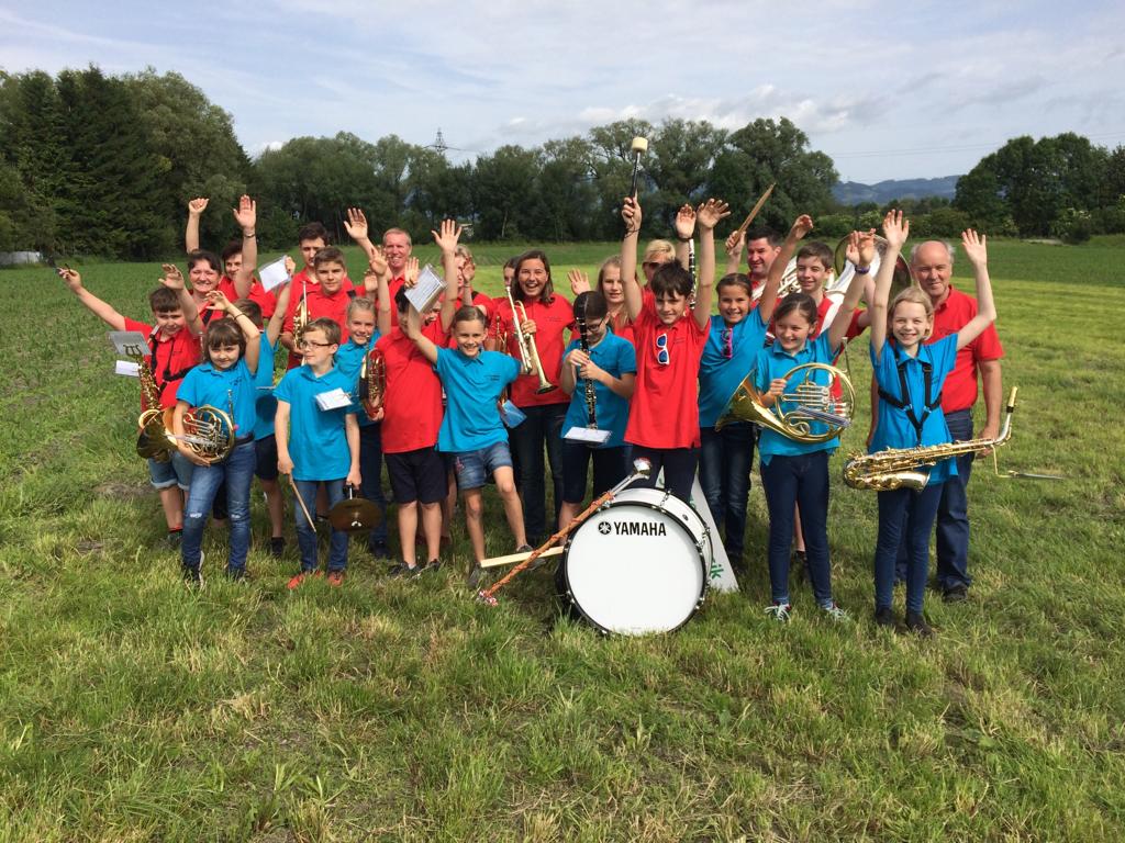 Jugendmusik Koblach und Dorfspatzen beim „ghörigen Bezirksmusikfest“ in Altach