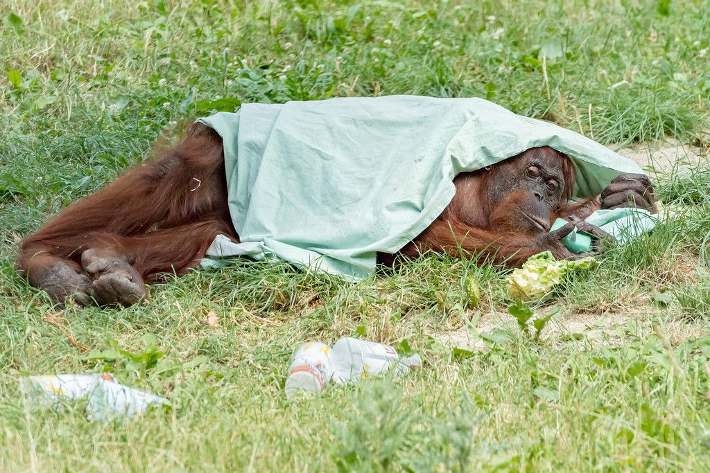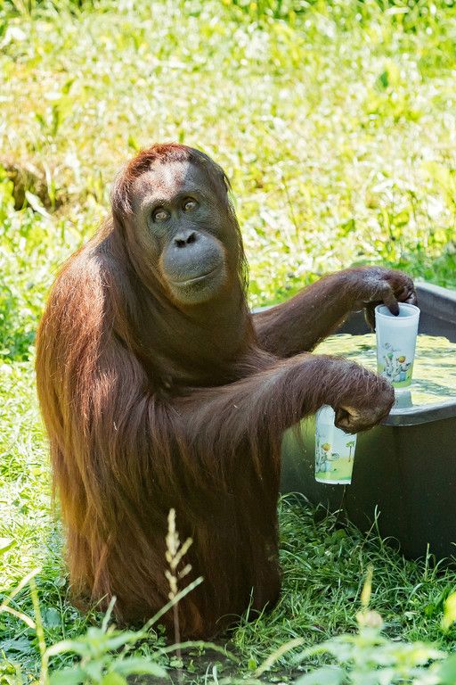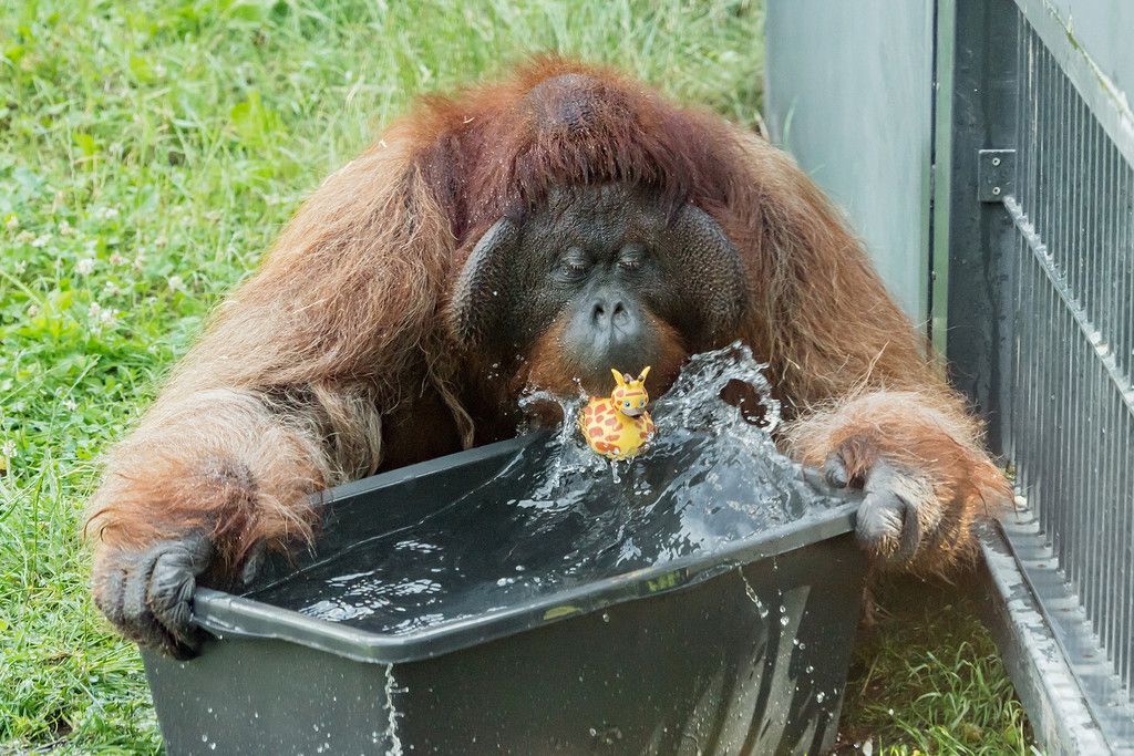 Schönbrunner Orang-Utans beim Pritscheln