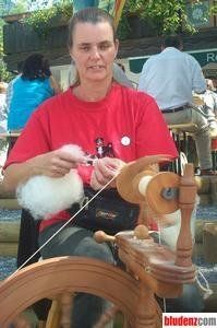 Ingrid Isele, bei der Schafwollverarbeitung.
