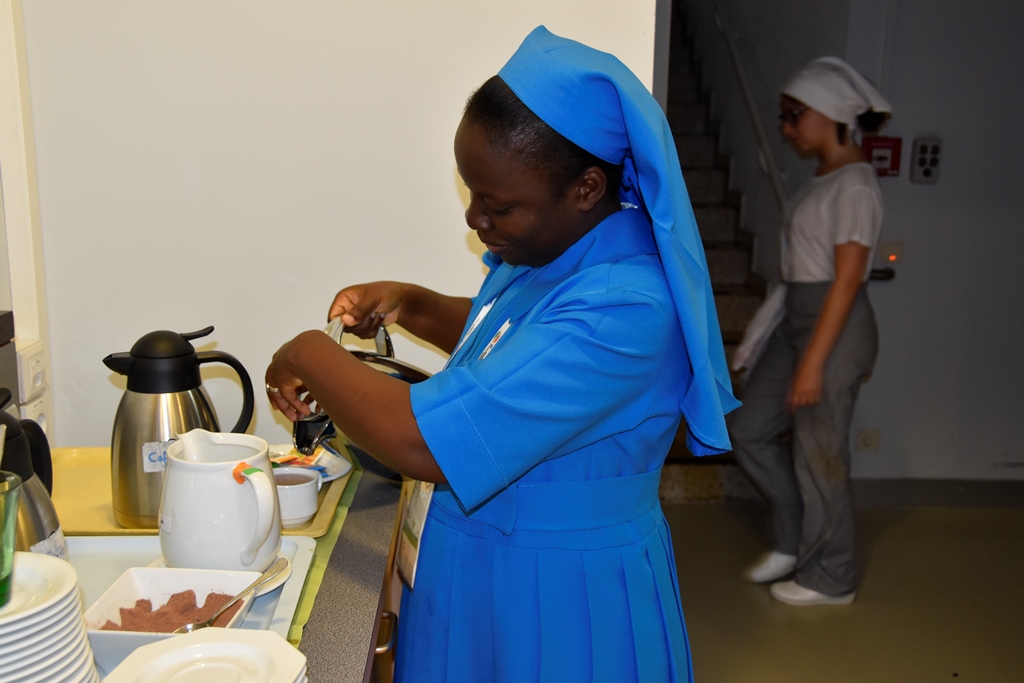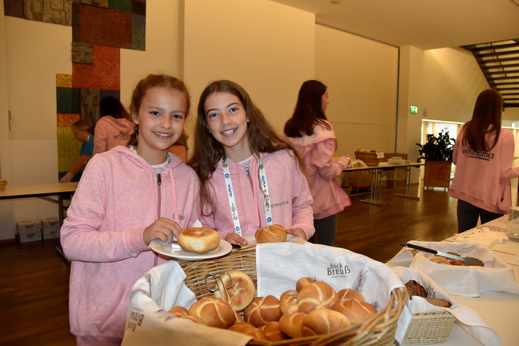 Die Gäste aus Kanada, Belgien und Malawi starten täglich mit einem ordentlichen Frühstück in den Tag. Zubereitet wird dieses von der Turnerschaft Rankweil, einem Team an HLW-SchülerInnen und -LehrerInnen sowie freiwilligen HelferInnen.