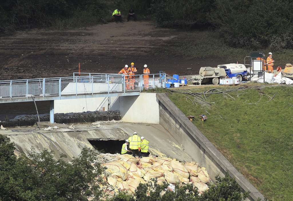 Die Einsatzkräfte arbeiten auf Hochtouren. Sie versuchen, mit Hochleistungspumpen den Wasserstand im Stausee abzusenken.