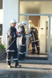 Mit Hochdruckrohr wurde das angebliche Feuer im Bürotrakt der Firma Martin gelöscht.