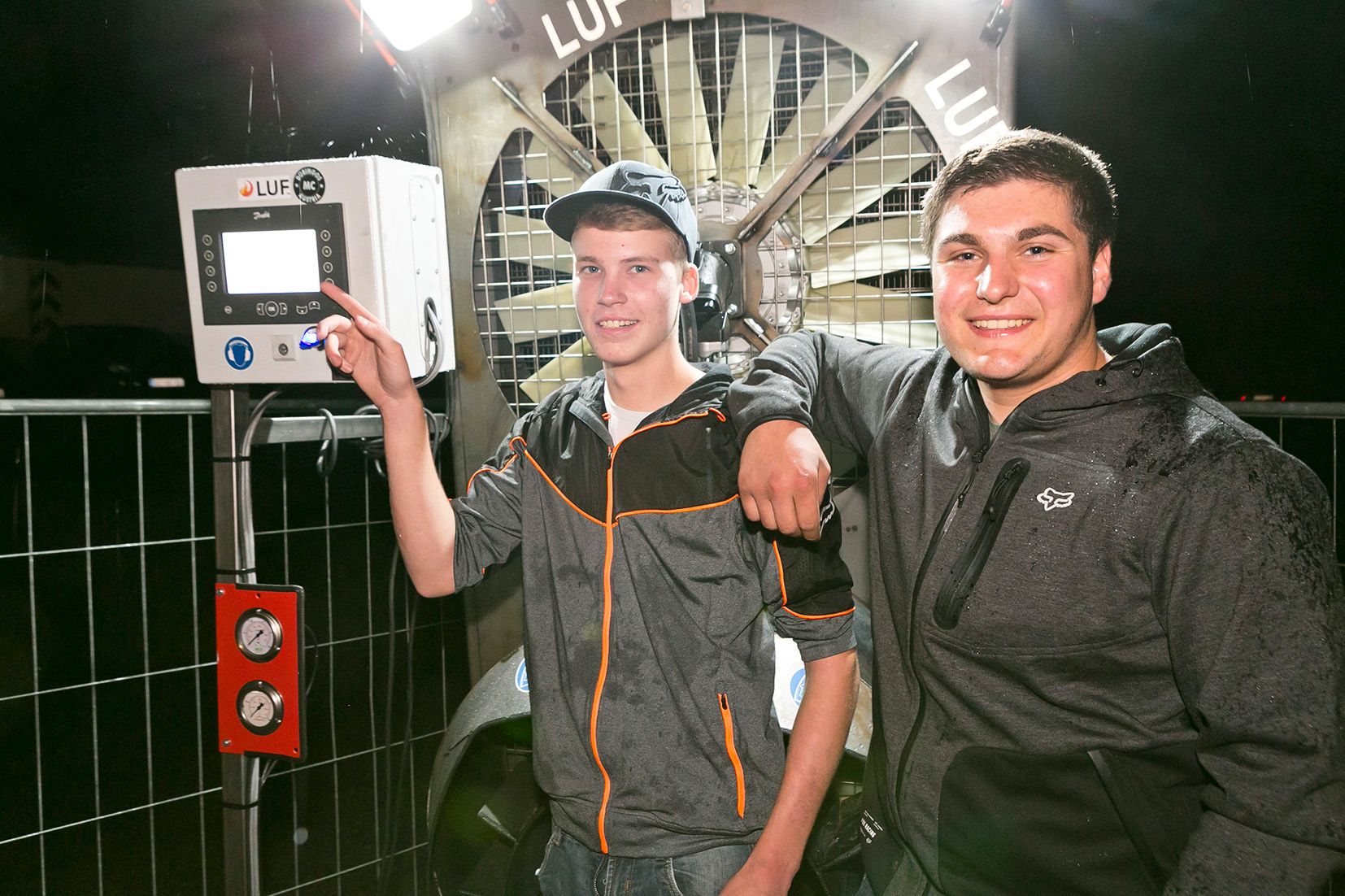 Zwei der Thüringer Feuerwehr-Jugendlichen, die den Prüfstand bauten.