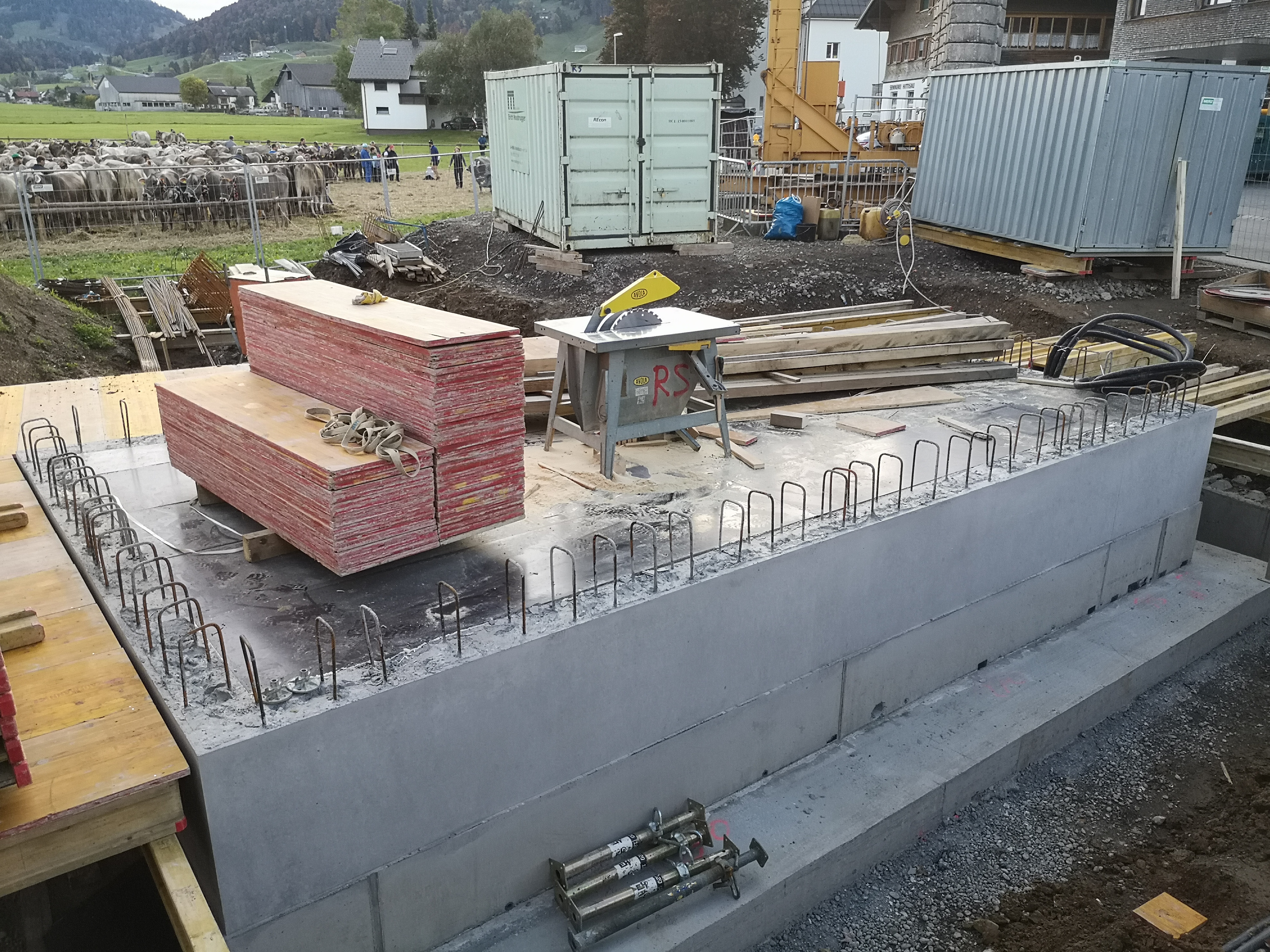 Das Fundament für den Informationspavillon steht.