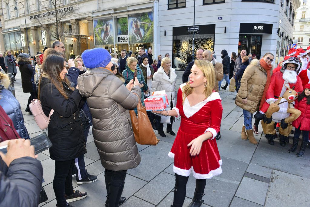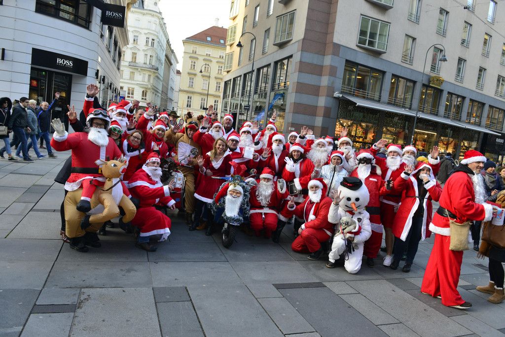 Von Praterstern weg in die Innere Stadt in die Kärntner Straße dort wurden sie belager von Touristen jeder wollte Selfi machen 2-3 Weihnachtsmänner hatten Spenden boxen bei sich und sammelten für Krebskranke Kinder auch Bundespräsident Alexander Van der Bellen wurde gesichtet und Heribert Kasper alias Mister Ferrari machte ein Selfi mit den Weihnachts Männern/Frauen ,danach die 2 Runden um den Ring,mit viel Gehupe und einige Winkten und Applaudierten den Vespa Fahren (Weihnachts Männer/Frauen ) zu. Beim Burgtheater hatte wieder jeder die Möglichkeit Selfie mit den Weihnachts Männer/ Frauen zu machen.