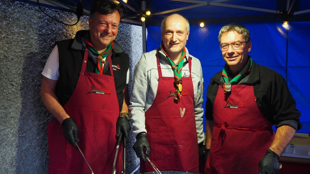 Erich, Herwig und Johannes im Apfelküachle Einsatz