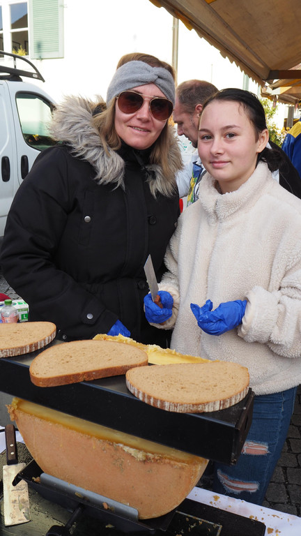 Mutter und Tochter am Raclette Stand: Jacqueline und Josefine