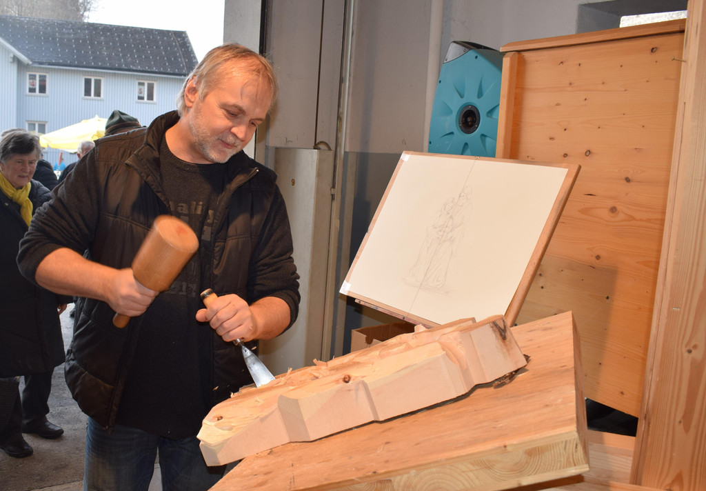 Holzschnitzer Rudolf Rößl schnitzte ein Relief.