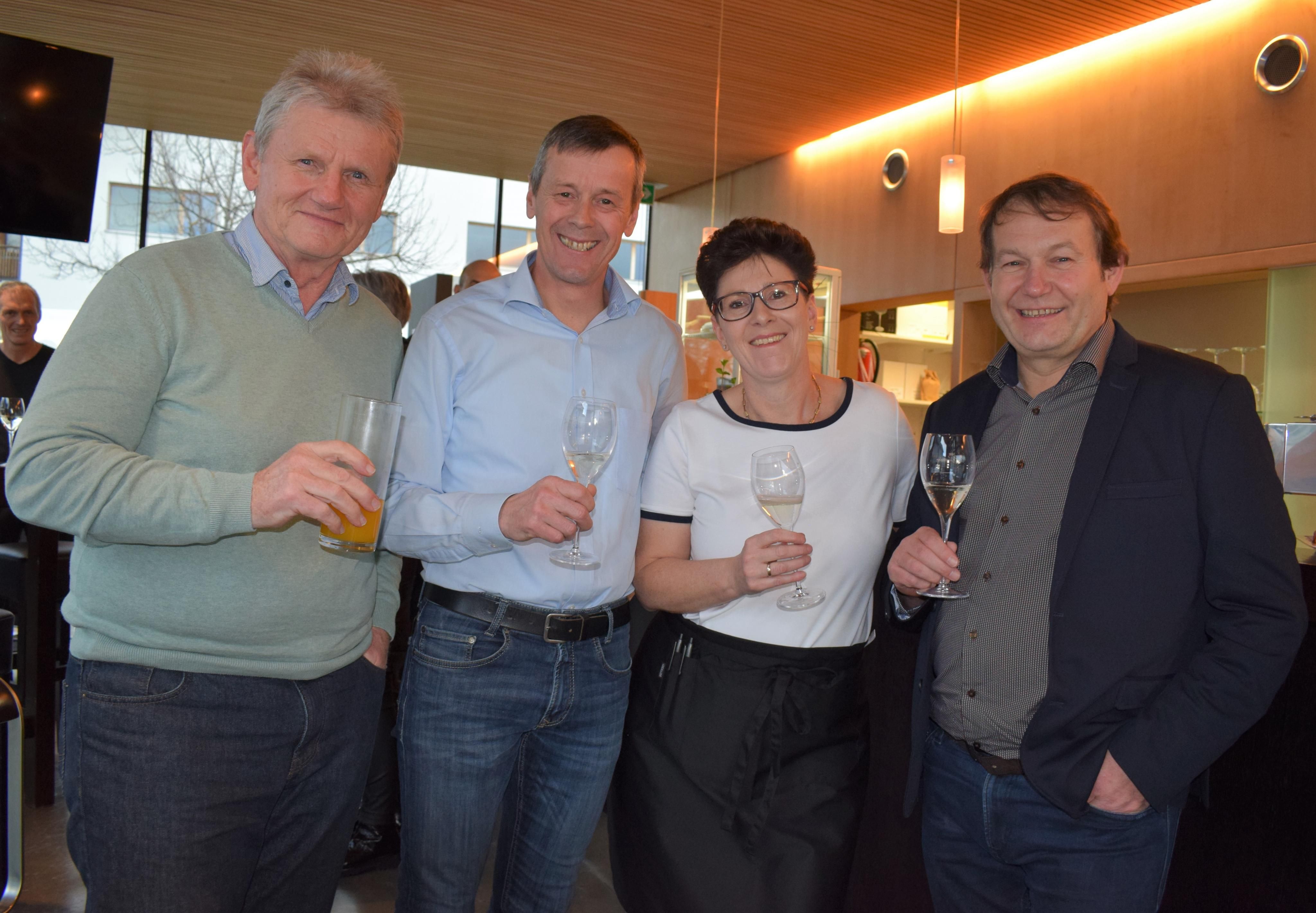 Begeisterte Gäste: Ludwig Fuchs, Jürgen Nußbaumer und Raimund Steurer mit Wirtin Daniela Thaler.