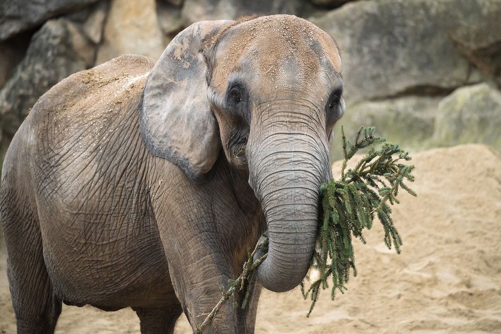 Schönbrunner Elefanten ließen sich Christbaum schmecken