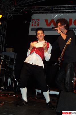 Highlight des Abends: Auf Aufforderung von "Mah Scho Widr", es solle sich doch ein Freiwilliger die Kleider vom Leib reißen, stürmte Daniel von der Bürgermusik Ludesch auf die Bühne und konnte es kaum erwarten, seinen gestählten Adonis-Körper der johlenden Menge zu präsentieren.