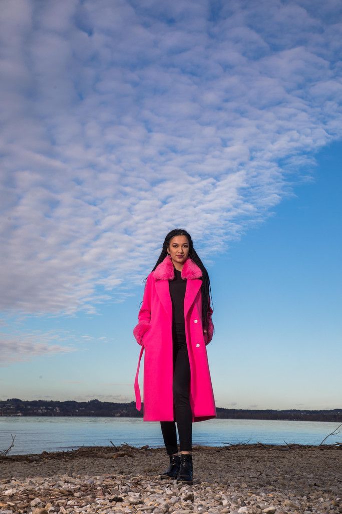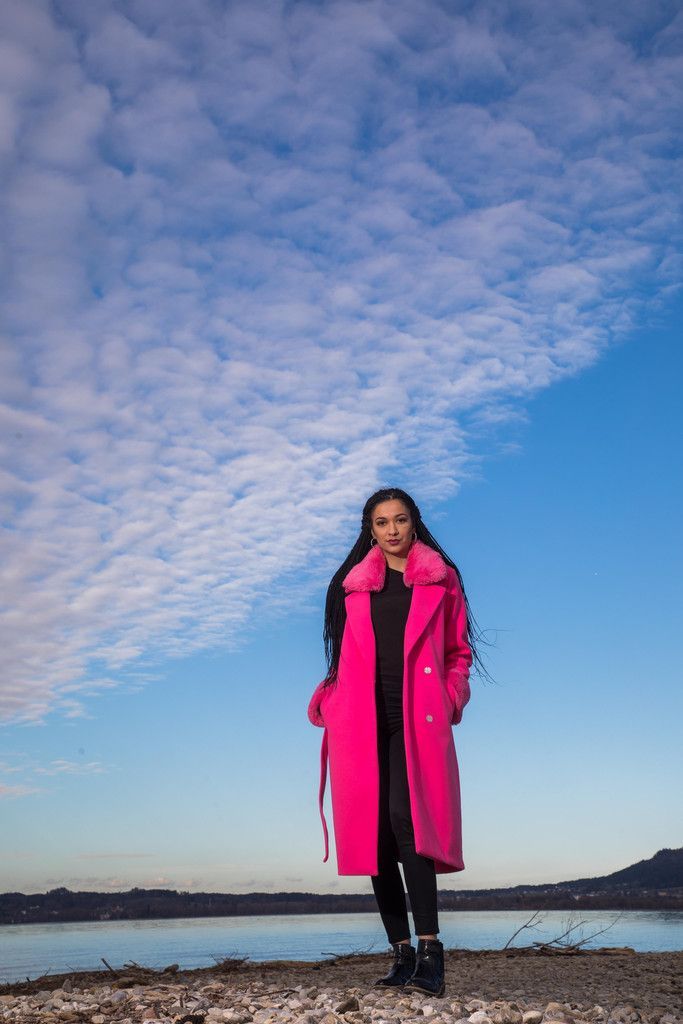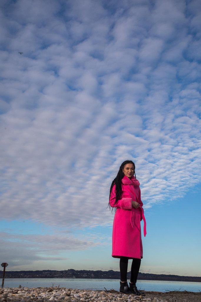 Einfach pink! Lara (25) aus Bregenz setzt auf pinke Power gegen den Winterschauer. VN/Steurer