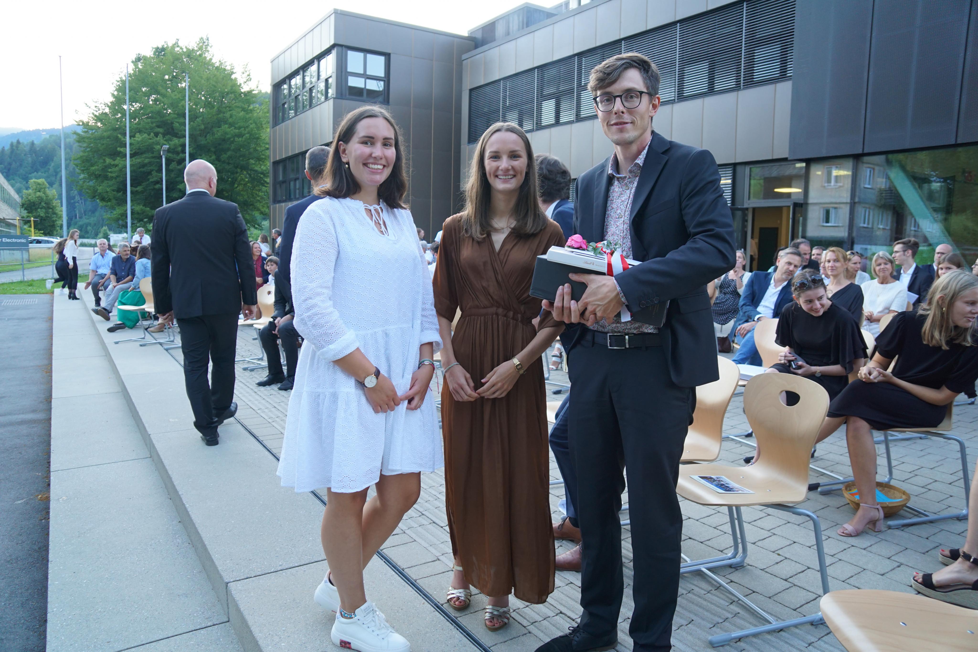 Katharina Schatz und Katharina Albrecht bedankten sich bei Klassenvorstand Tobias Bilgeri.