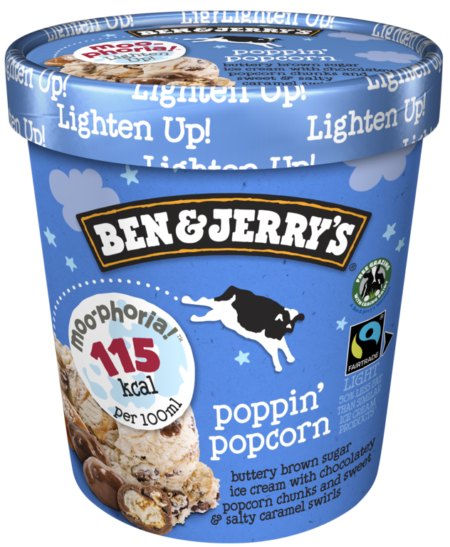 Ben & Jerry’s moo-phoria Poppin‘ Popcorn: Crunchiges Popcorn kombiniert mit Butterkaramell- Milcheis und süß-salzigem Karamell Swirl