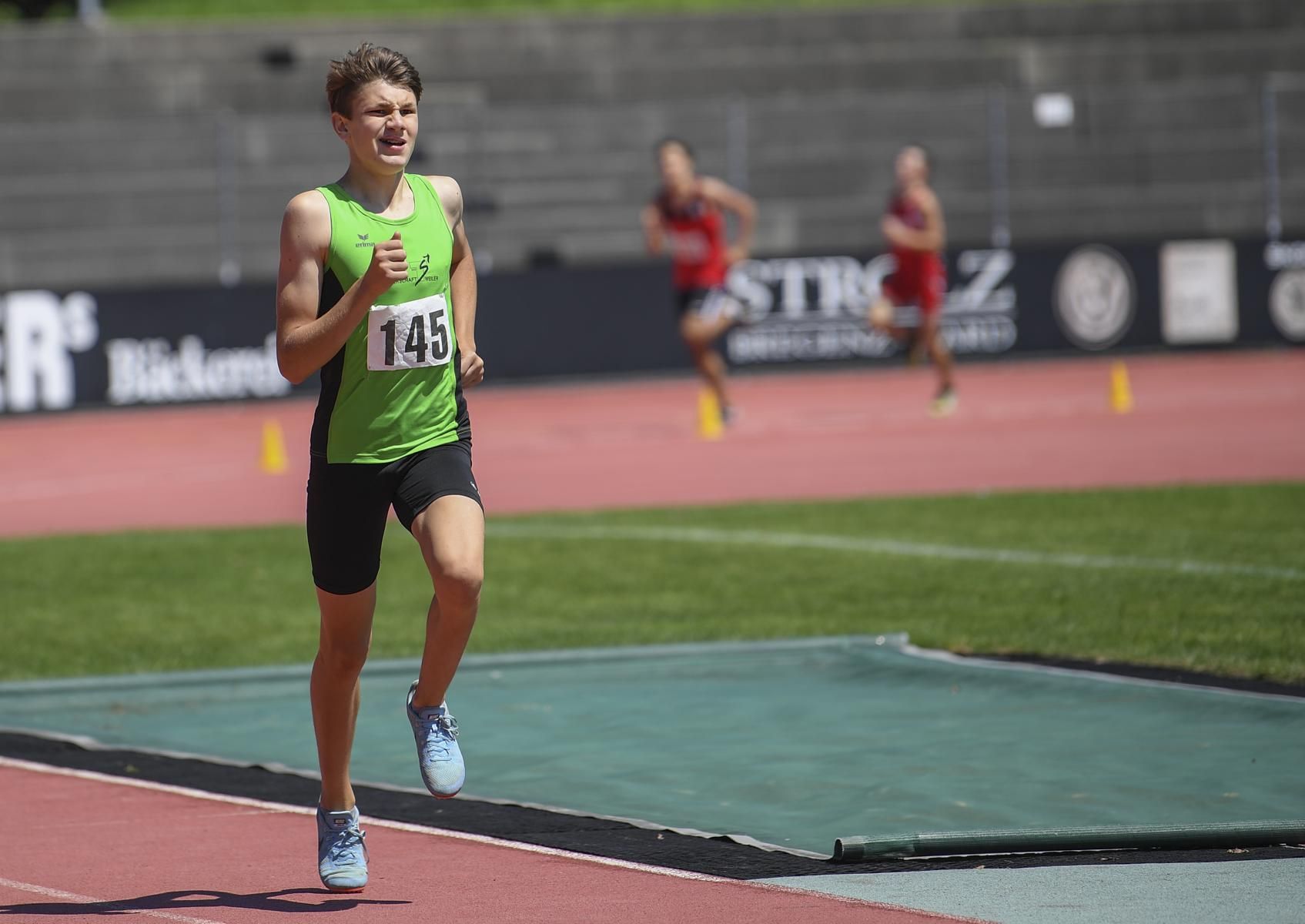 Als ersters durchs Ziel beim 100m Lauf: Jakob DünserJakob