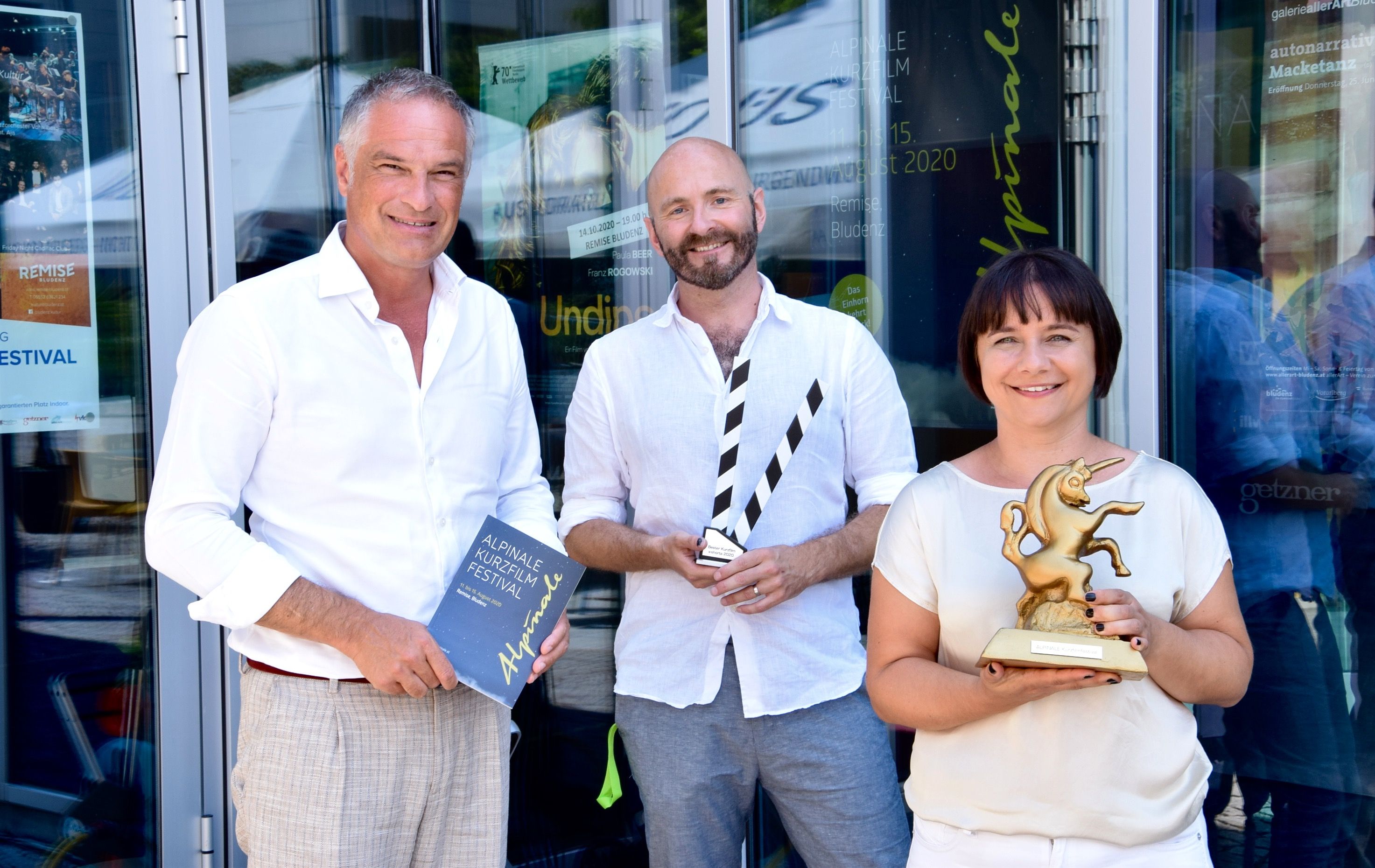 Bludenzer Vizebgm. Mario Leiter, Jürgen Schacher und Intendantin Manuela Mylonas (beide Alpinale)