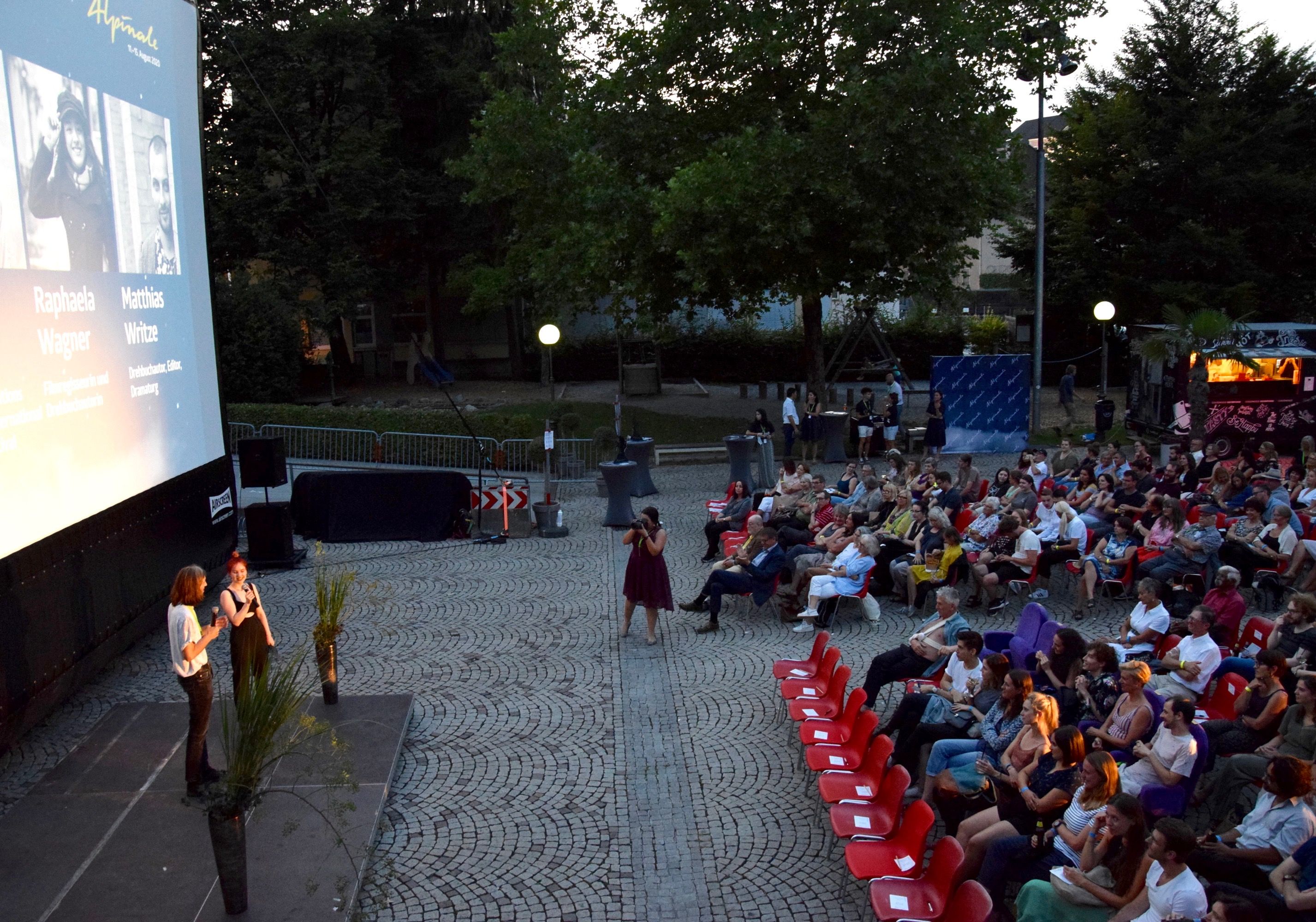 Der Raiffeisenplatz in Bludenz am Eröffnungsabend des Kurzfilmfestivals "Alpinale"
