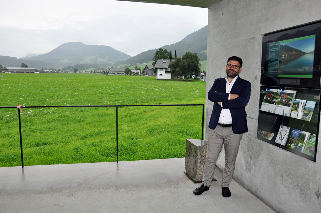 Wie ein Bilderrahmen wirkt der neue Infopoint „Ein.Blick“ des Naturparks Nagelfluhkette.