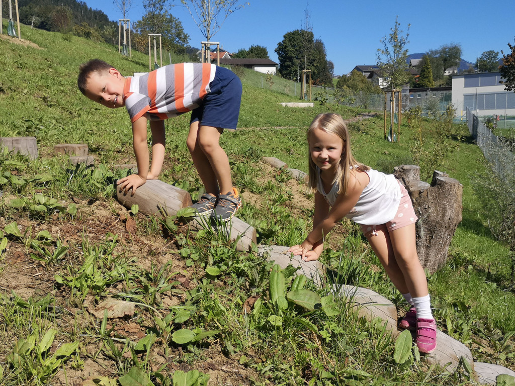 Naturmaterialien laden zum Klettern und Balancieren ein.