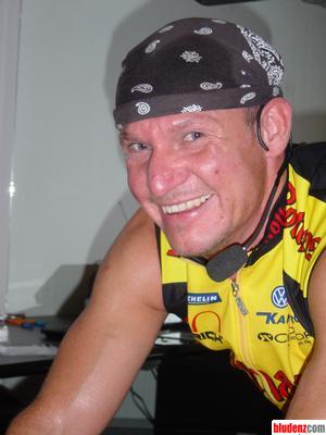 Der Anführer des Spinning-Marathons Uwe Schaaf. Der Besitzer vom Fitness-Point spornte immer wieder die Radler an durchzuhalten.