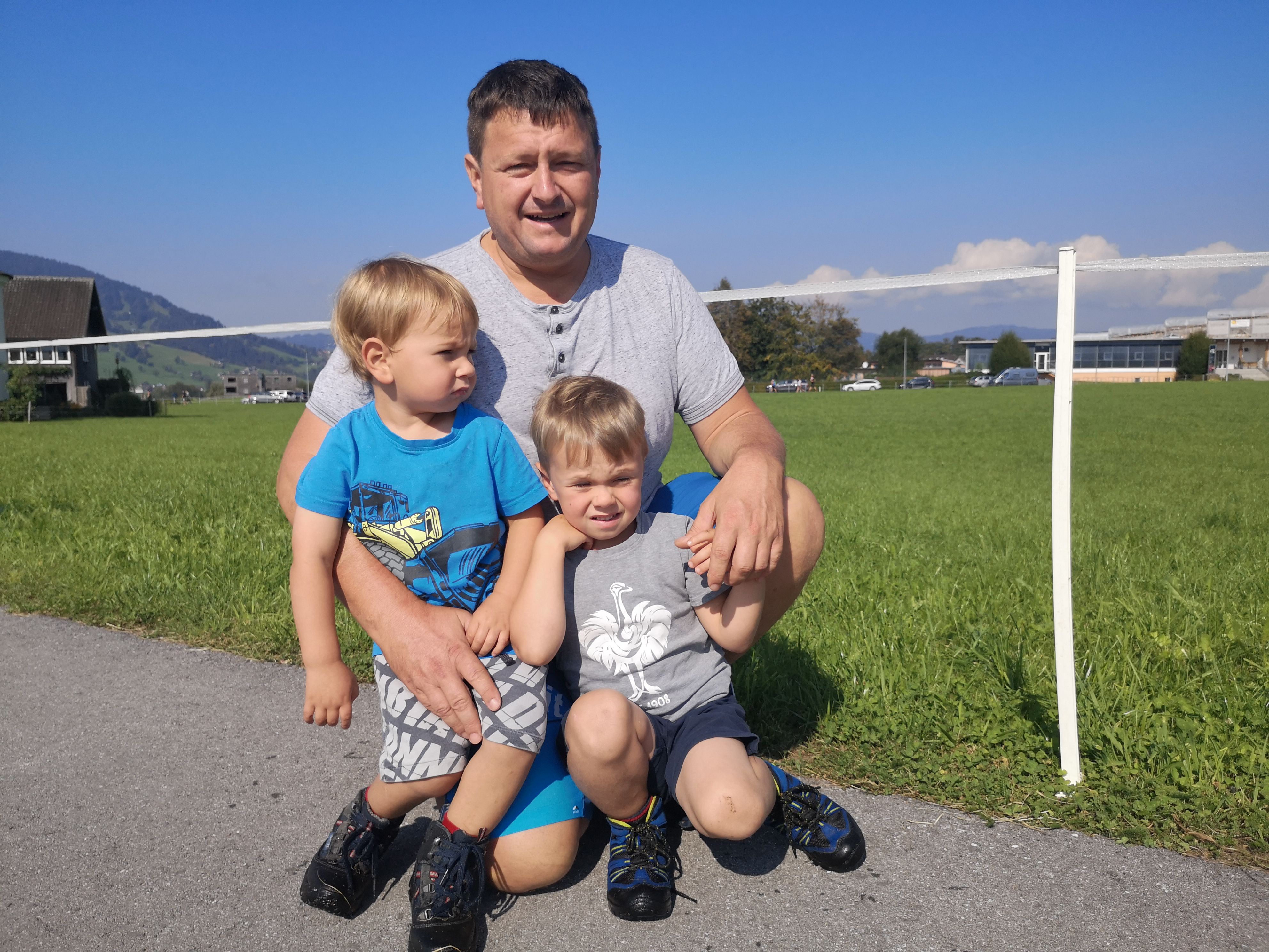Interessierte Zuschauer: Dietmar Berkmann mit Laurin und Noah.
