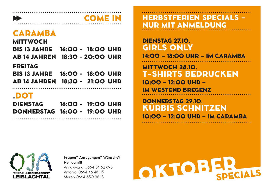 Herbstprogramm Offene Jugendarbeit