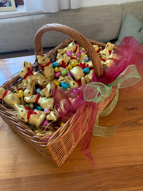 Der voll bestückte Osterkorb ist bereit für die jungen Autoren..
