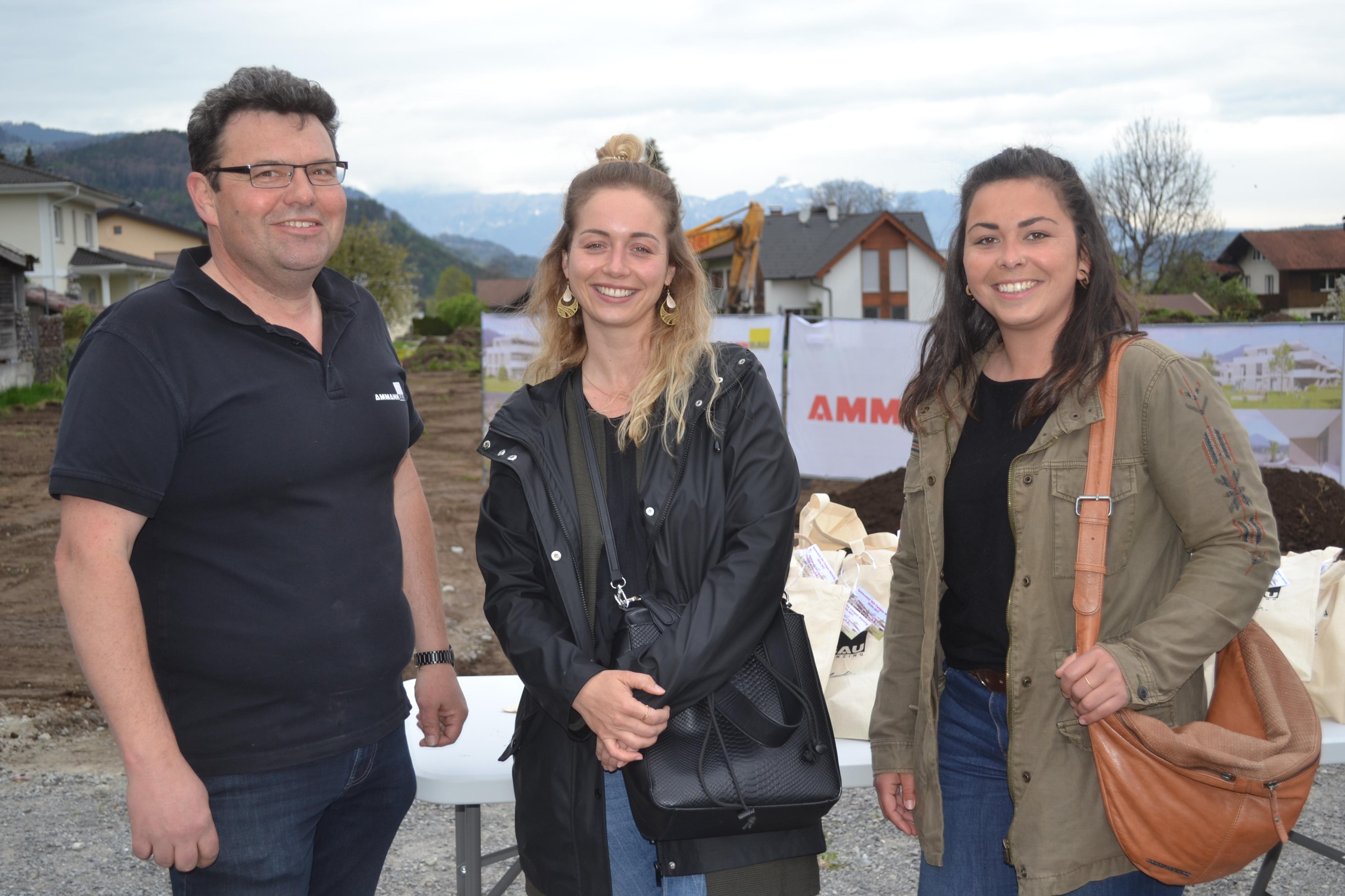 Verkaufsleiter Stefan Grass, Stefanie Gantner und Eva Winkel freuten sich über den Spatenstich.