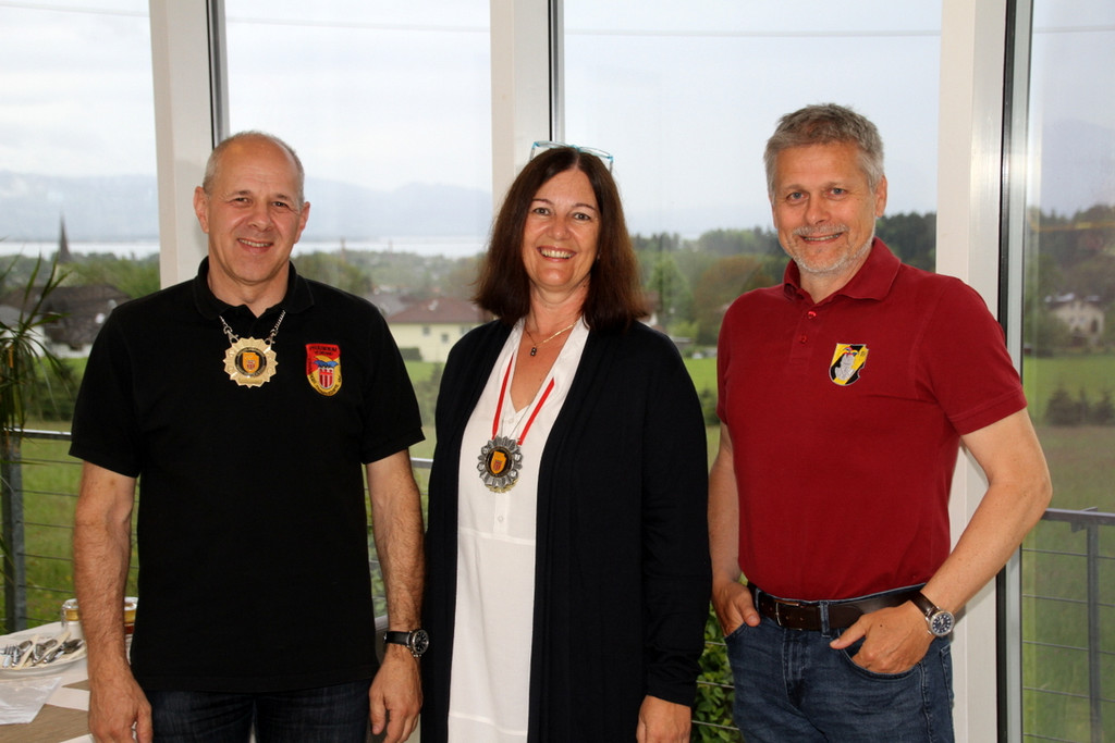 3G-Corona-Konform Vizepräsident des Verbands der Vorarlberger Fasnatzünfte Christof Huber, Komtur Thomas Lissy und Landeselferrätin für den Bezirk Bregenz Claudia Katz (vlnr)