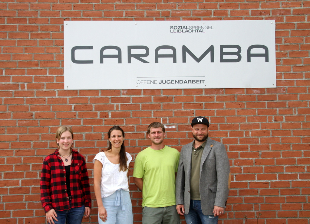 Team der OJA Leiblachtal Praktikantin in Ausbildung Svenja Hesselaar, Psychologin Agustina Hansen, Stellvertreter Martin Brecher und Leiter Stefan Welte (vlnr)