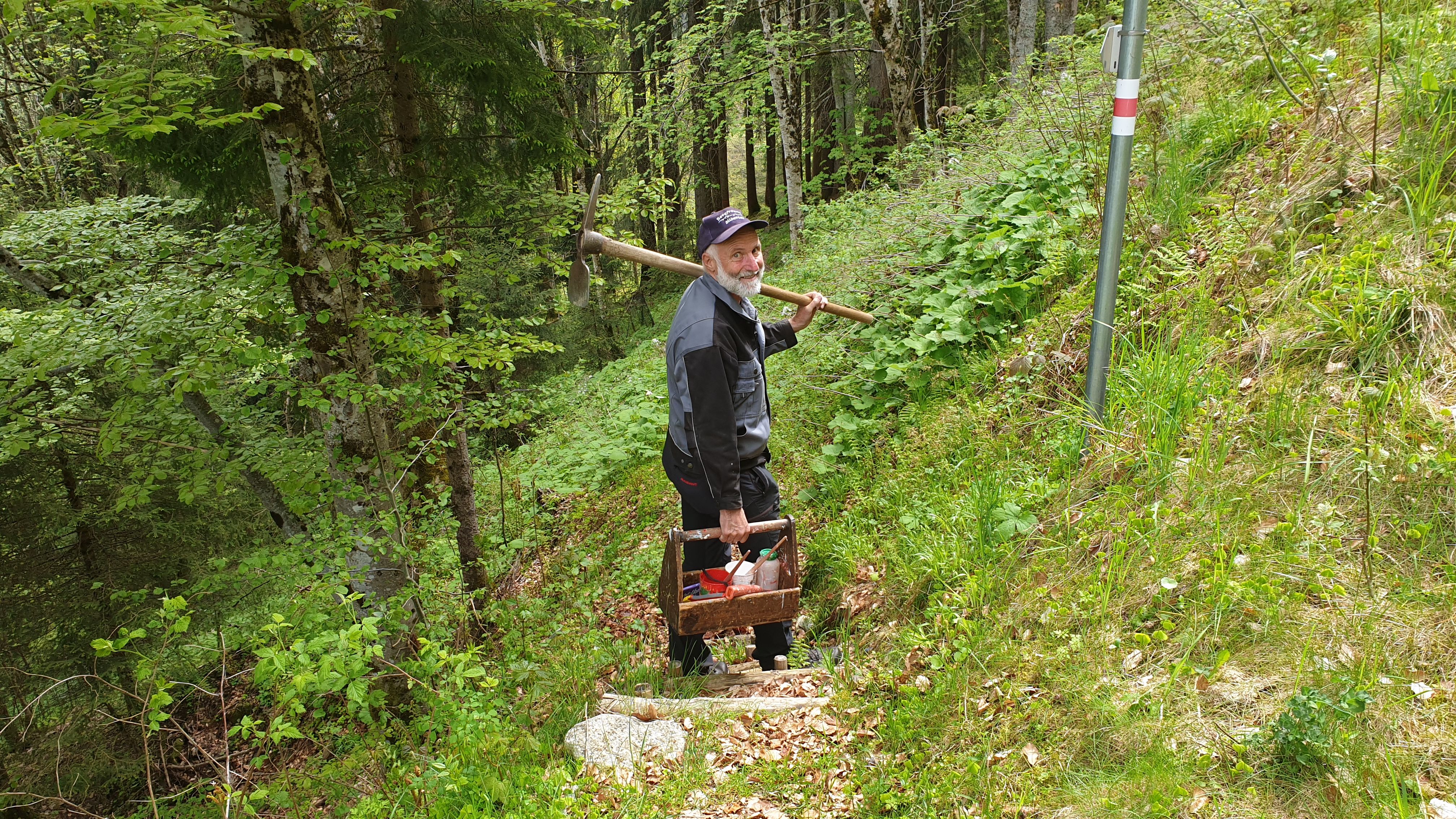 Mit dem Wegewart Walter Zudrell im Schattwald in Silbertal unterwegs.