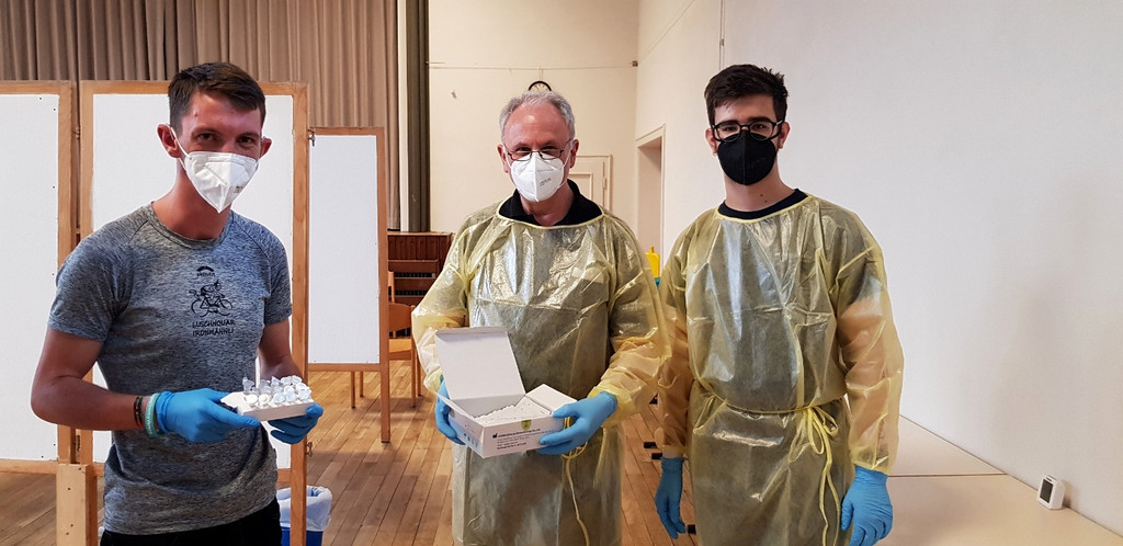 Mitglieder des Musikvereines übernahmen die Selbsttests unter Aufsicht.