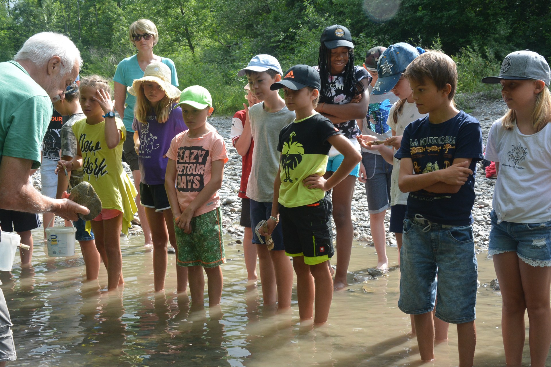 Gespannt lauschen die Kinder, was der Exkursionsleiter ihnen erzählt.
