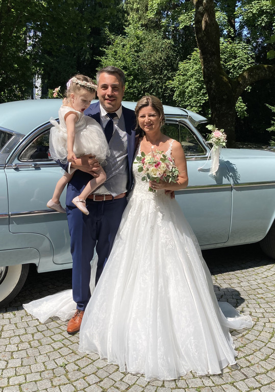 In einer Limousine fuhr das Paar zum Hochzeitsfest auf den Gebhardsberg.