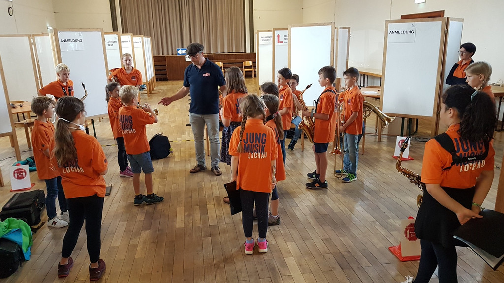 Werbung für die Blasmusik: Die „Rasselbande“ des MV Lochau zu Gast bei den Volksschülern